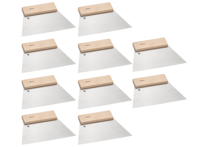 Der Trapezspachtel hat ein 180 mm breites, flexibles Stahlblatt. Es eignet sich ideal zum Glätten von Spachtelmasse, zum Entfernen von Unebenheiten und für feine Kantenarbeiten. Der Holzgriff liegt gut in der Hand und ermöglicht präzises Arbeiten. Der Spachtel ist robust, langlebig und wird von Profis im Maler- und Lackiererhandwerk geschätzt. Er ist auch unter dem Namen Trapezspachtel bekannt.