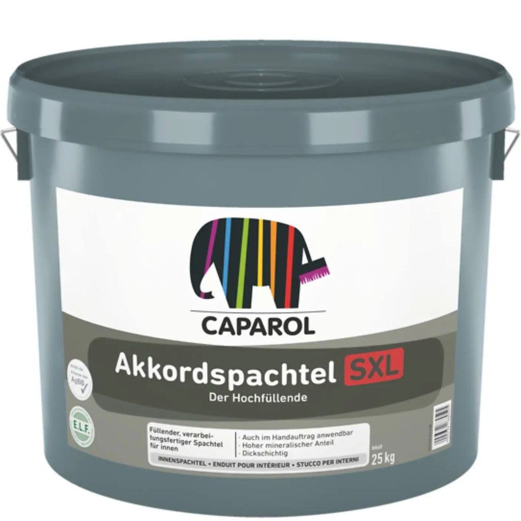 CAPAROL® Akkordspachtel SXL ist eine spritzfertige, gut füllende Spachtelmasse für die professionelle Verarbeitung, besonders auf Ortbeton, Kalksandstein-Planblock- und Porenbetonelementen, Gipsplatten (Gipskartonplatten).