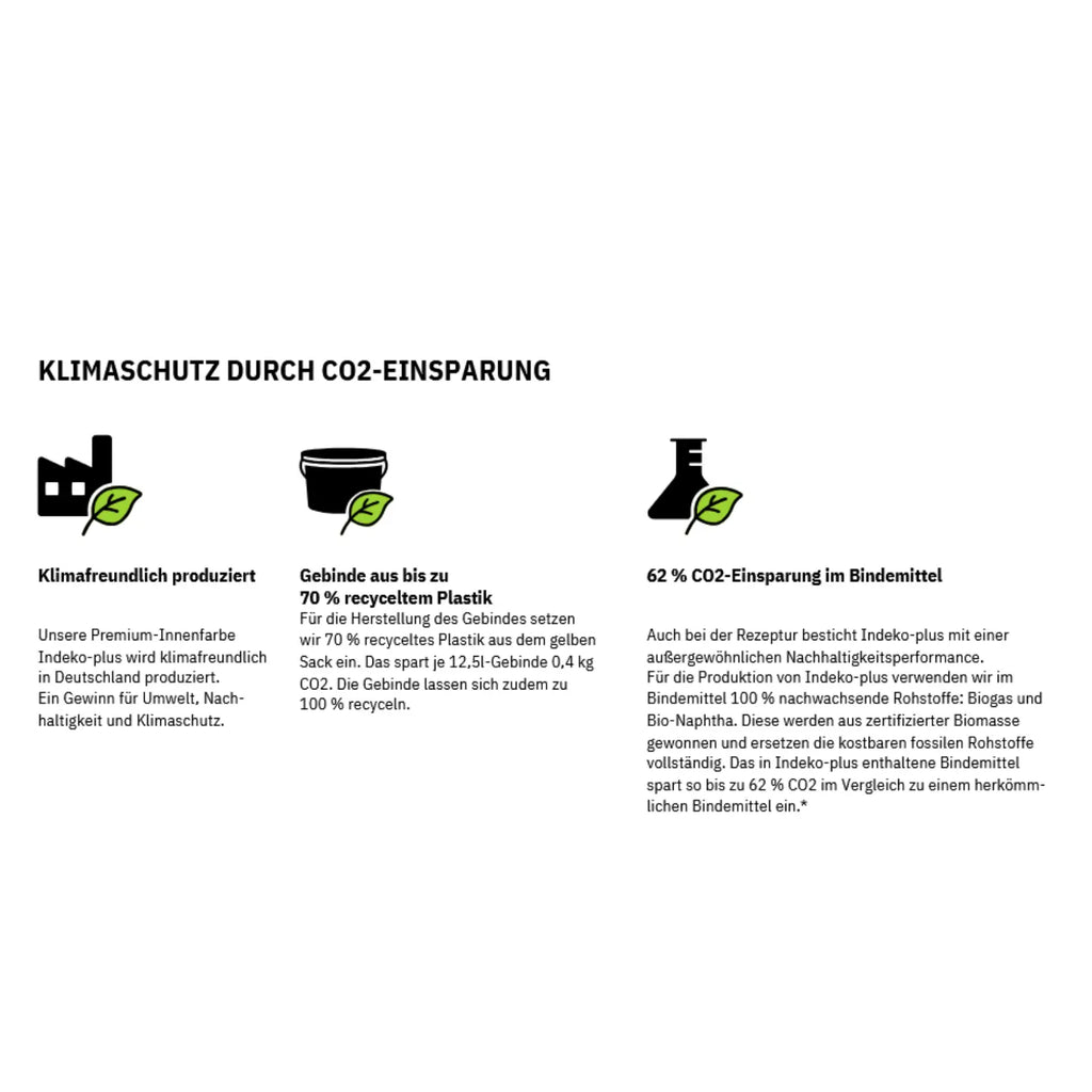 CAPAROL® CapaGreen Indeko-Plus ist eine ressourcenschonende Premium-Innenfarbe für hochwertigste, matte Oberflächen. Darüber hinaus besticht Indeko-plus durch ihre angenehme und effiziente Verarbeitung, verfügt über ein besonders hohes Deckvermögen und bietet dank der E.L.F. plus Rezeptur ein optimales Raumklima.