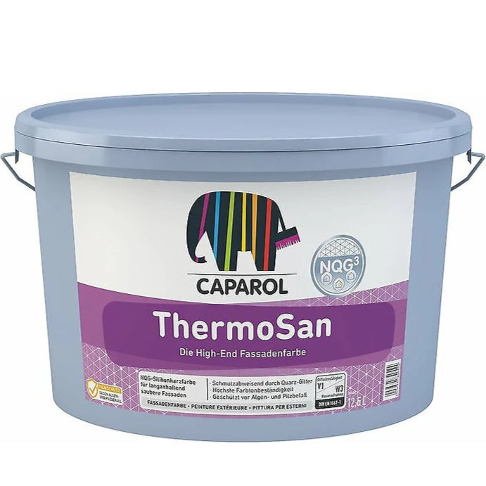 CAPAROL® ThermoSan mit NQG-Technologie sollte kühl und frostgeschützt gelagert werden. Zudem ist es ratsam große Temperaturschwankungen zu vermeiden. Das Produkt sollte vor direkter Sonnenbestrahlung geschützt werden. Angebrochene Gebinde gut verschlossen halten. In original verschlossener Verpackung ist die Farbe mindestens 24 Monate haltbar.