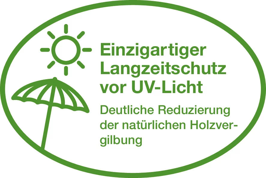 Osmo Uviwax® UV-Protection ist ein Holzanstrich mit wachsartigem Charakter, der die natürliche Holzvergilbung durch die UV-Strahlen deutlich reduziert und der natürliche, helle oder leicht weißgefärbte Holzfarbton bleibt auf lange Zeit erhalten. Der Holzanstrich schirmt das Lignin des Holzes vor den schädigenden UV-Strahlen ab. Osmo Uviwax® UV-Protection ist schmutzunempfindlich, wasserabweisend, abriebfest und ergibt eine griffsympathische Oberfläche. Holzgerecht offenporig, reißt nicht, blättert nicht und schuppt nicht ab. Der getrocknete Anstrich ist unbedenklich für Mensch, Tier und Pflanze (speichel- und schweißecht lt. DIN 53160, geeignet für Kinderspielzeug lt. EN 71.3).